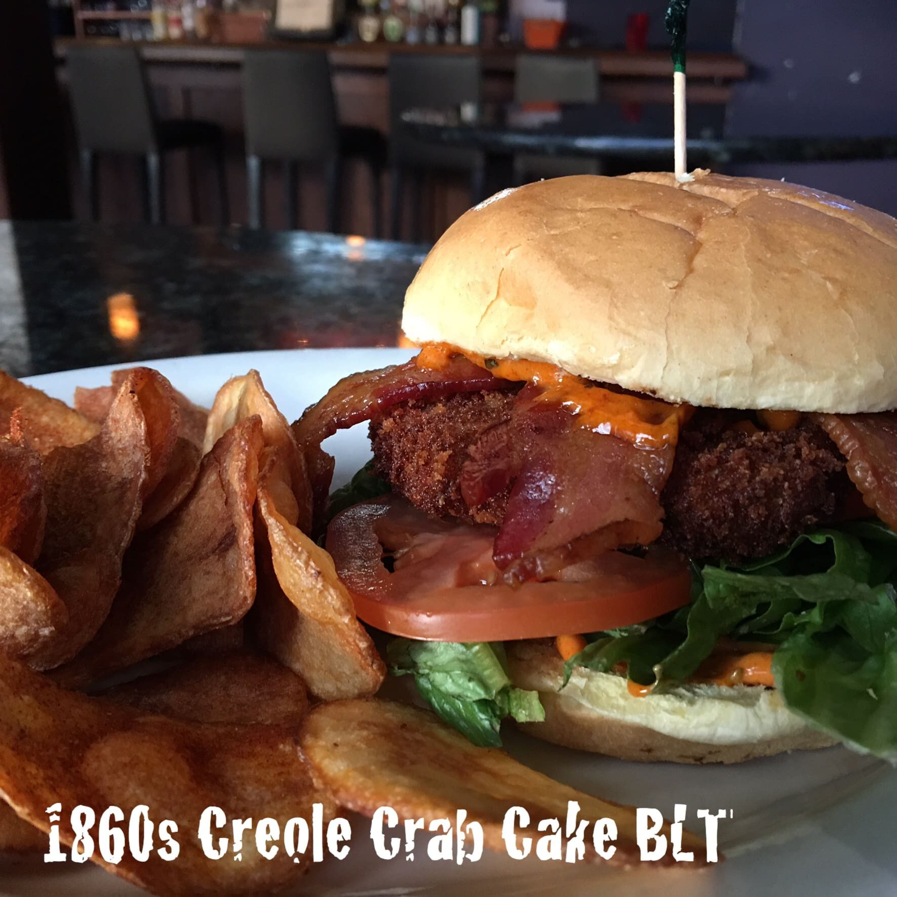 Crab cake smothered in aioli, topped with bacon, lettuce and tomato on a fresh bun.