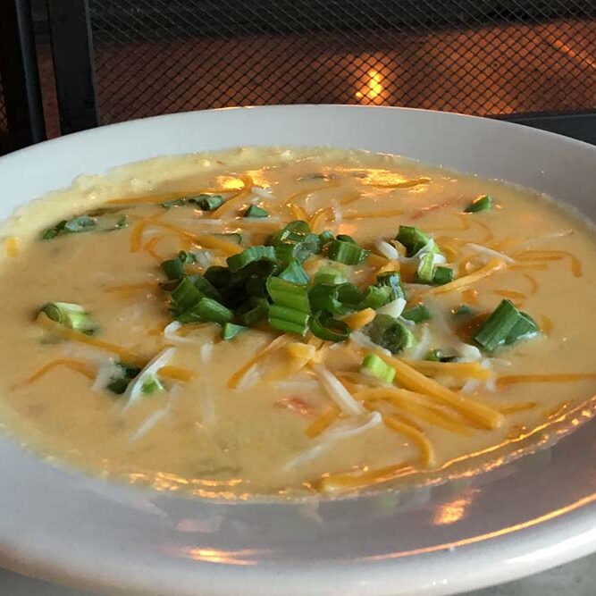 Cajun style with shrimp, surimi crab, andouille sausage and vegetables, simmered in our own blend of spices. Served with jalapeño cornbread.